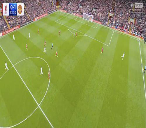 利物浦防线漏洞百出,布鲁诺-费尔南德斯在禁区内完成了一次迟来的跑位,接应传中射门,可惜未能得分。