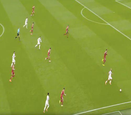 第30分钟,随着姆伯莫向前推进,迪亚洛拉开边路。凯尔凯兹不得不跟随迪亚洛的跑动以防姆伯莫传球给他,这使得范戴克陷入一对一的不利局面。