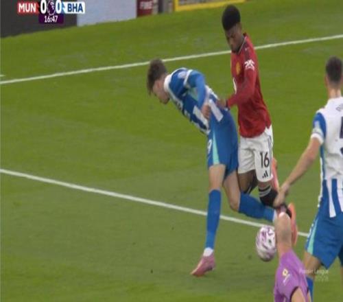 雷速体育10月26日宣 英超第9轮,曼联暂时2-0领先布莱顿。比赛第15分钟,阿马德突入禁区内被德库耶佩放倒,裁判并未做出判罚。
