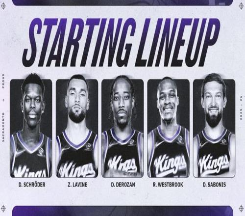 随后,NBA官方公布两队首发,按照NBA官方的对位关系以及国王官方的首发图来看,确认191cm的控球后卫威斯布鲁克将担任国王队本场比赛的首发大前锋,这也是威斯布鲁克职业生涯中首次以首发大前锋的身份出战。