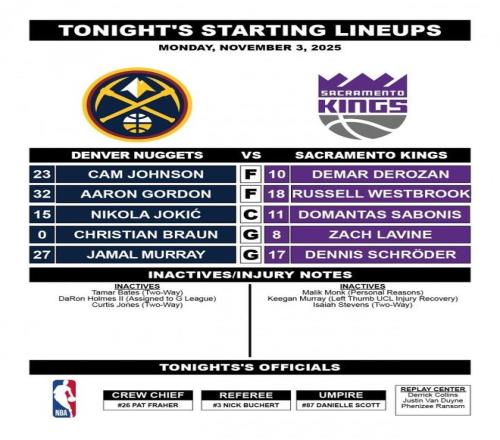 北京时间11月4日,掘金主场迎战国王的比赛即将开始。