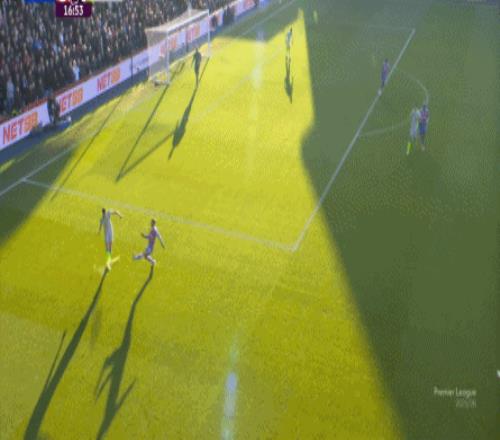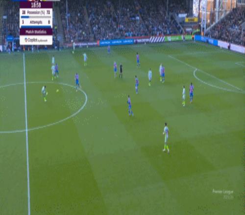 不过,人还在,精力不可能和上赛季类似,所以哪怕在主场,水晶宫依然保守应对,直至第10分钟,采用连续争高球的方式打进了禁区: