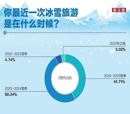 更值得关注的是,Z世代的冰雪体验呈现出近乎“压缩式”的时间集中。《报告》显示,在年轻人最近一次冰雪旅行中,2024年–2025年雪季占41.71%,2023年–2024年雪季占50.24%,两者合计接近92%。换句话说,Z世代的冰雪记忆几乎都发生在过去两年——这批涌向雪场的年轻人,绝大多数是“尔滨效应”催生的新玩家。