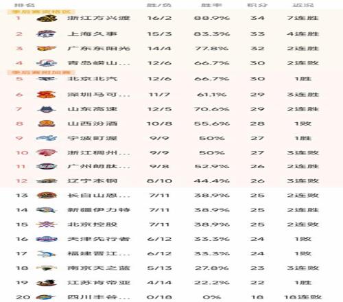 CBA最新积分榜